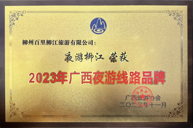 百里柳江夜游精品項目榮獲2023年廣西夜游路線品牌
